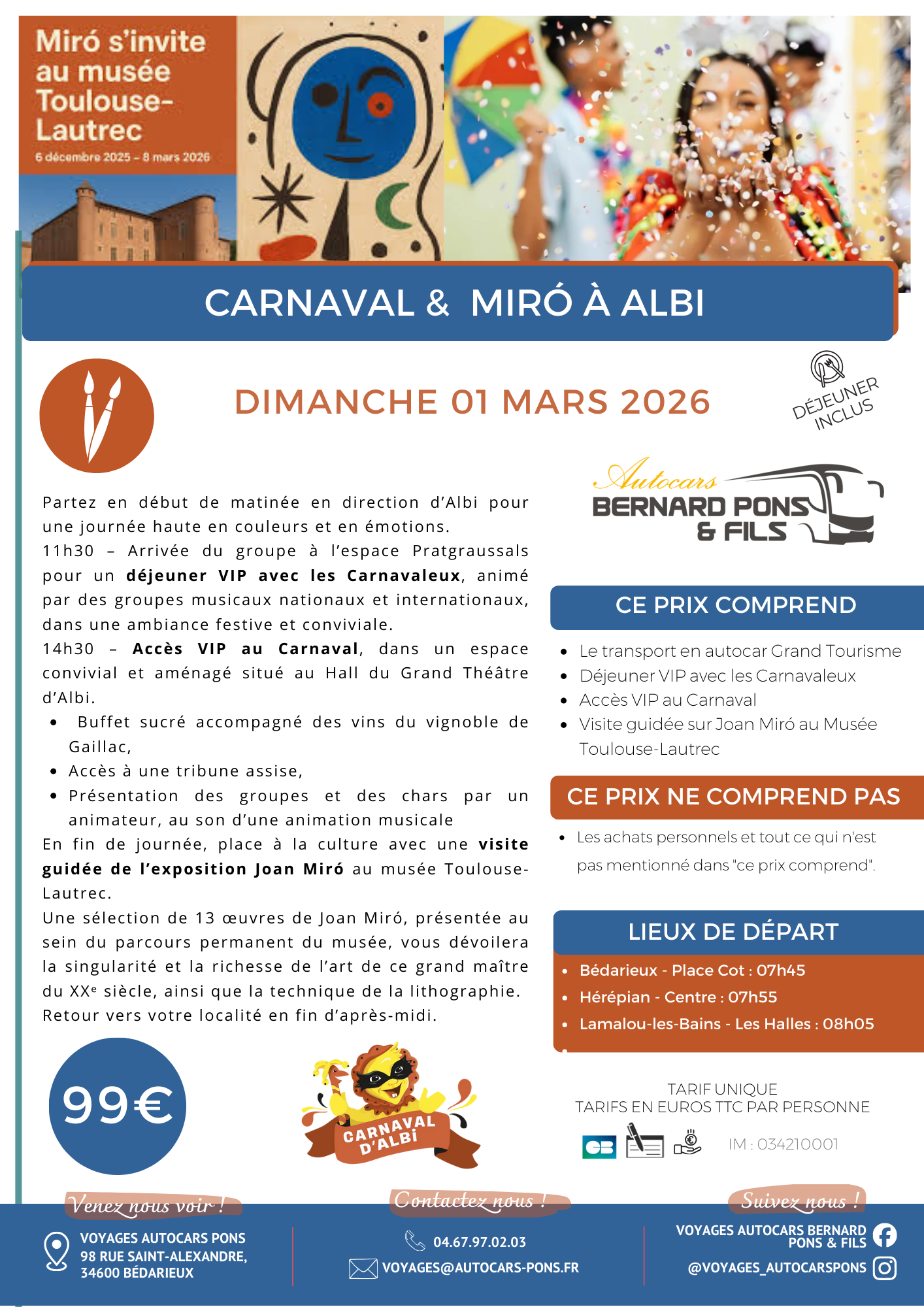 Autocars Bernard PONS & Fils s’engage à respecter les dispositions de la loi n°78-17 du 6 janvier 1978 relative à l’informatique, aux fichiers et aux libertés modifiées et au Règlement (UE) 2016/679 du Parlement européen et du Conseil du 27 avril 2016 dit « RGPD » et prendre toute précaution nécessaire pour préserver la sécurité des informations nominatives confiées.