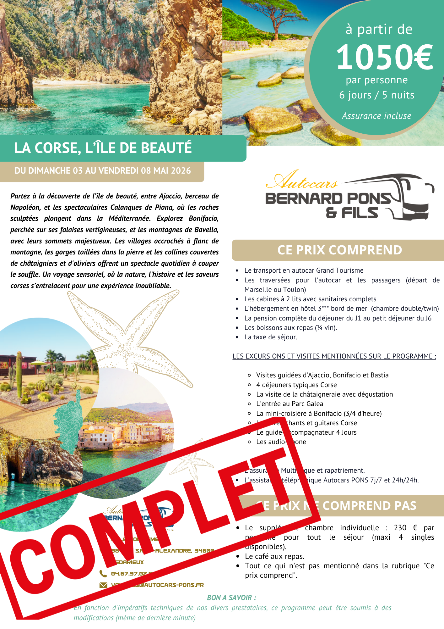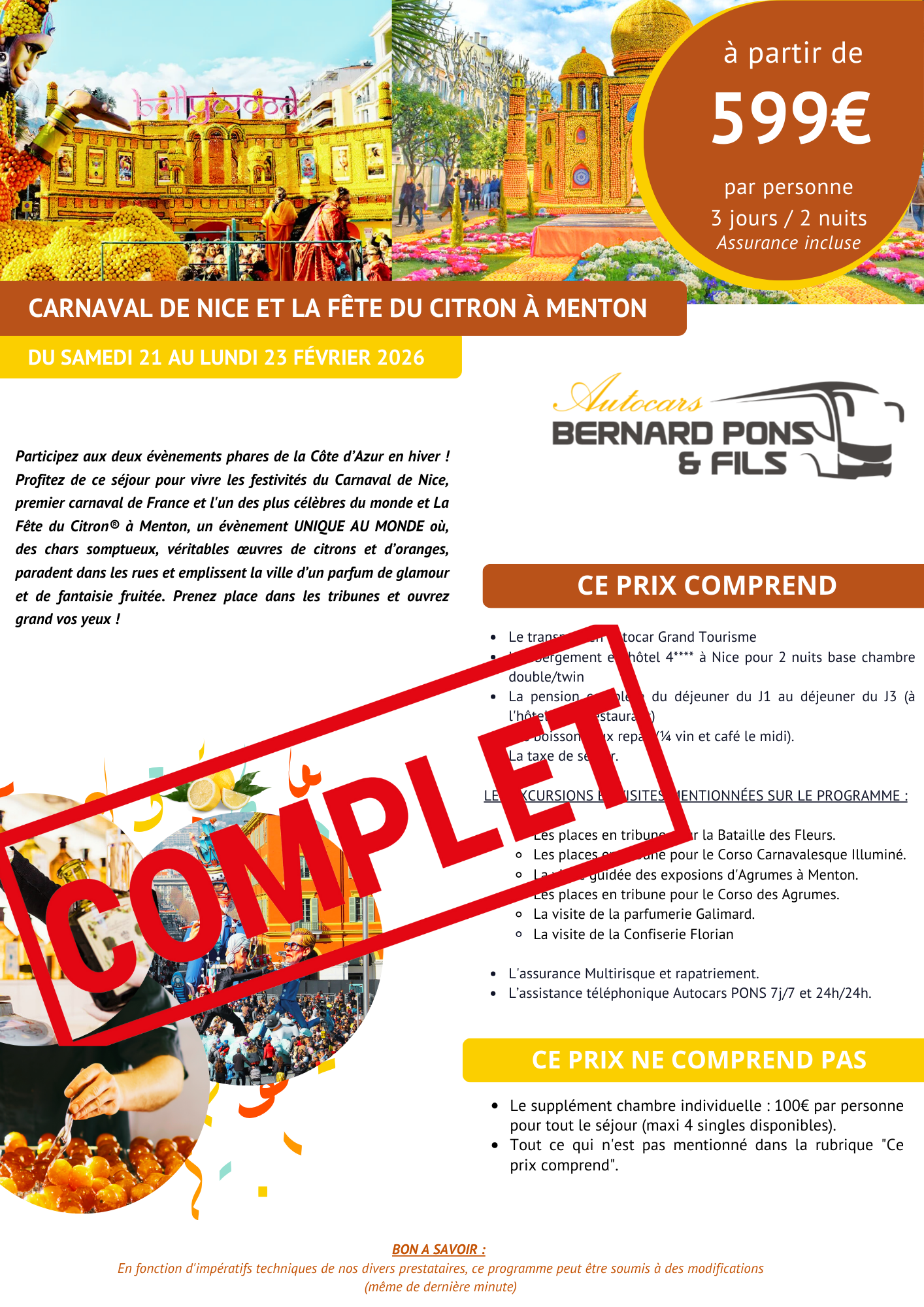 A l’issue de cette durée ou en cas d’exercice de ses droits par les internautes, Autocars Bernard PONS & Fils s’engage à détruire toute copie des données personnelles des internautes qu’il détiendrait.
