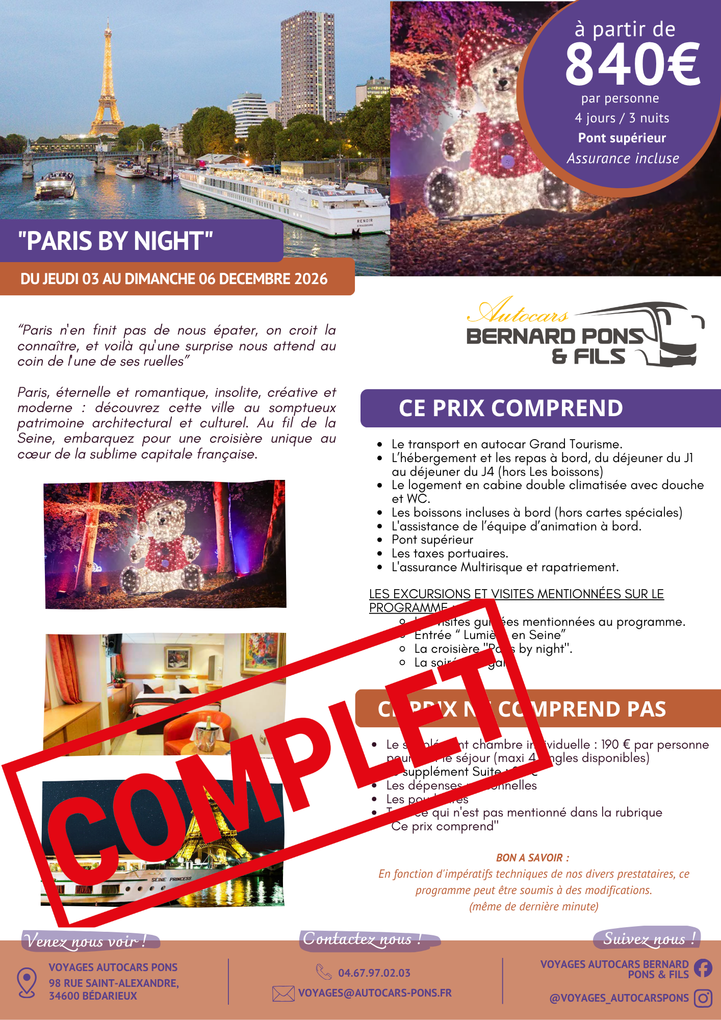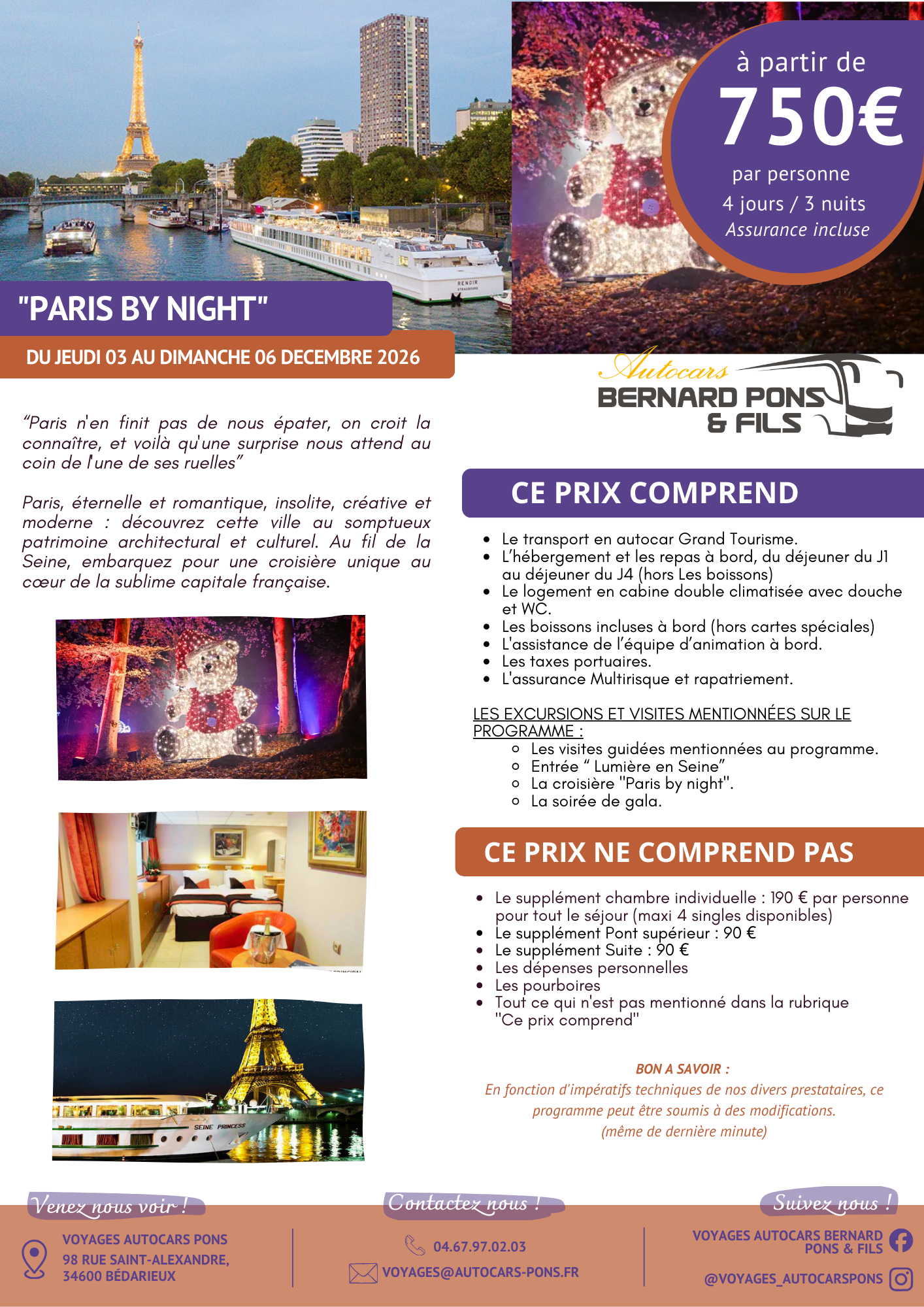 Autocars Bernard PONS & Fils s’engage à respecter les dispositions de la loi n°78-17 du 6 janvier 1978 relative à l’informatique, aux fichiers et aux libertés modifiées et au Règlement (UE) 2016/679 du Parlement européen et du Conseil du 27 avril 2016 dit « RGPD » et prendre toute précaution nécessaire pour préserver la sécurité des informations nominatives confiées.